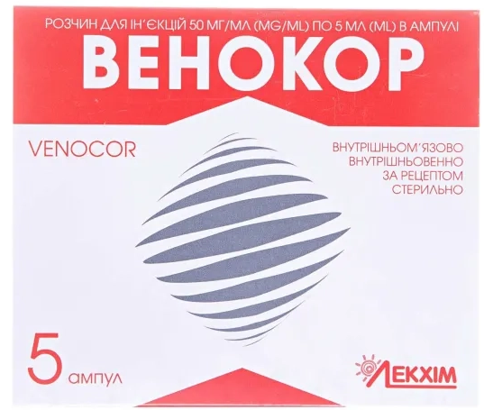 Венокор призначають внутрішньом’язово або внутрішньовенно (струминно, краплинно). Дози підбирають індивідуально. При інфузійному способі введення препарат слід розводити у фізіологічному розчині натрію хлориду (200 мл). Починають лікування дорослих з дози 50-100 мг 1-3 рази на добу, поступово підвищуючи дозу до отримання терапевтичного ефекту. Струминно Венокор вводять повільно протягом 5-7 хвилин, краплинно – зішвидкістю 40-60 крапель за 1 хвилину. Максимальна добова доза не повинна перевищувати 1200 мг.