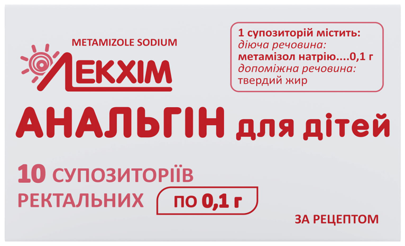 1 супозиторій містить метамізолу натрію 100 мг (0,1 г) або 250 мг (0,25 г);