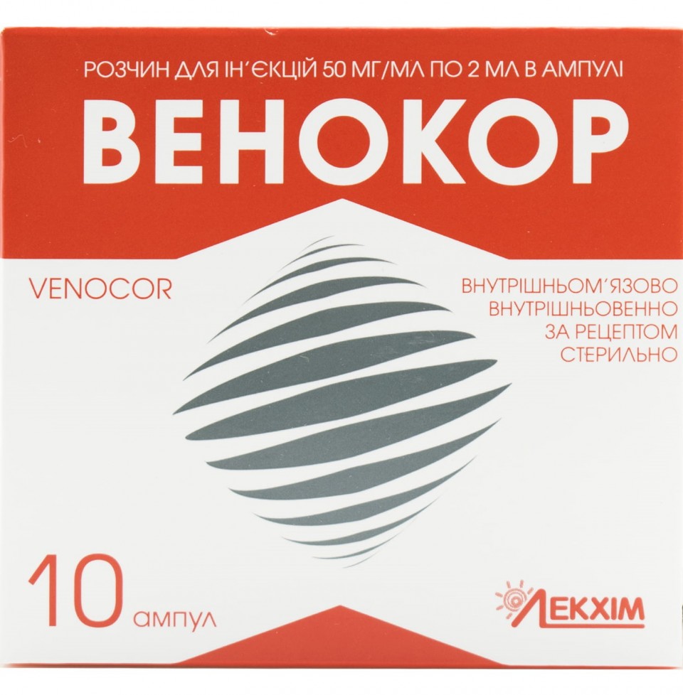 При гострому інфаркті міокарда Венокор вводять внутрішньовенно або внутрішньом’язово протягом 14 діб на тлі традиційної терапії інфаркту міокарда, що включає нітрати, бета-адреноблокатори, інгібітори ангіотензинперетворювального ферменту (АПФ), тромболітики, антикогулянтні та антиагрегантні засоби, а також симптоматичні засоби за показаннями. У перші 5 діб для досягнення максимального ефекту бажане внутрішньовенне введення Венокору, в наступні 9 діб можливе внутрішньом’язове введення Венокору. Внутрішньовенне введення Венокору проводять шляхом краплинної інфузії, повільно (щоб уникнути побічних ефектів), з 0,9 % розчином хлориду натрію або 5 % розчином декстрози (глюкози) в об’ємі 100-150 мл протягом 30-90 хв. За необхідності можливе повільне струминне введення Венокору протягом не менше 5 хвилин.