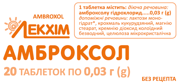Метаболизм и выведение. Около 30 % дозы после перорального применения выводится путем пресистемного метаболизма. Амброксола гидрохлорид метаболизируется главным образом в печени путем глюкуронизации и расщепления до дибромантраниловой кислоты (около 10 % дозы).