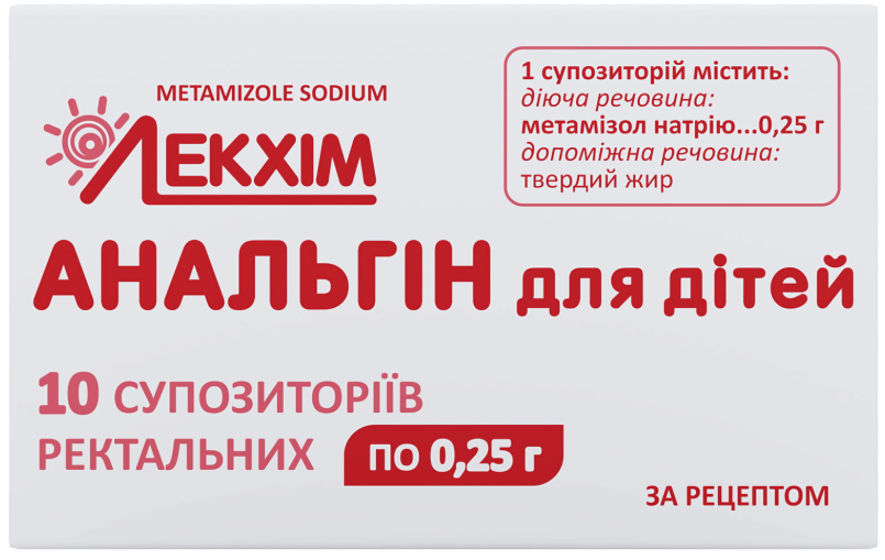 1 супозиторій містить метамізолу натрію 100 мг (0,1 г) або 250 мг (0,25 г);