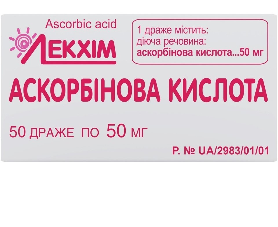 1 драже содержит аскорбиновой кислоты 50 мг;