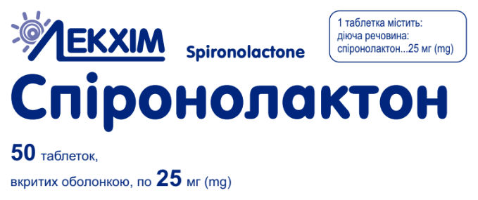 1 таблетка містить 25 мг, 50 мг або 100 мг спіронолактону;