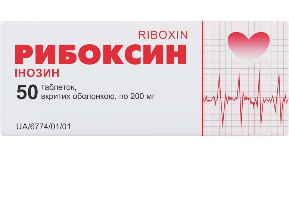 1 таблетка містить рибоксину (інозину) – 200 мг;